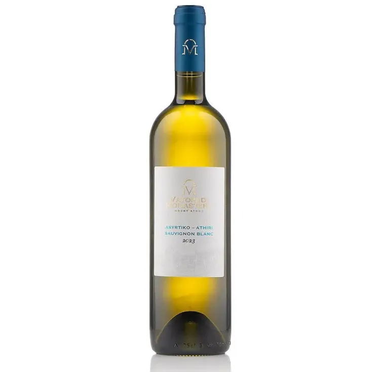 Това бяло вино е истинско отражение на тероара на Света гора. Блендът съчетава стоманената структура и високата киселинност на Асиртико (емблематичният сорт на Гърция) с ароматната елегантност и мекота на Совиньон Блан.